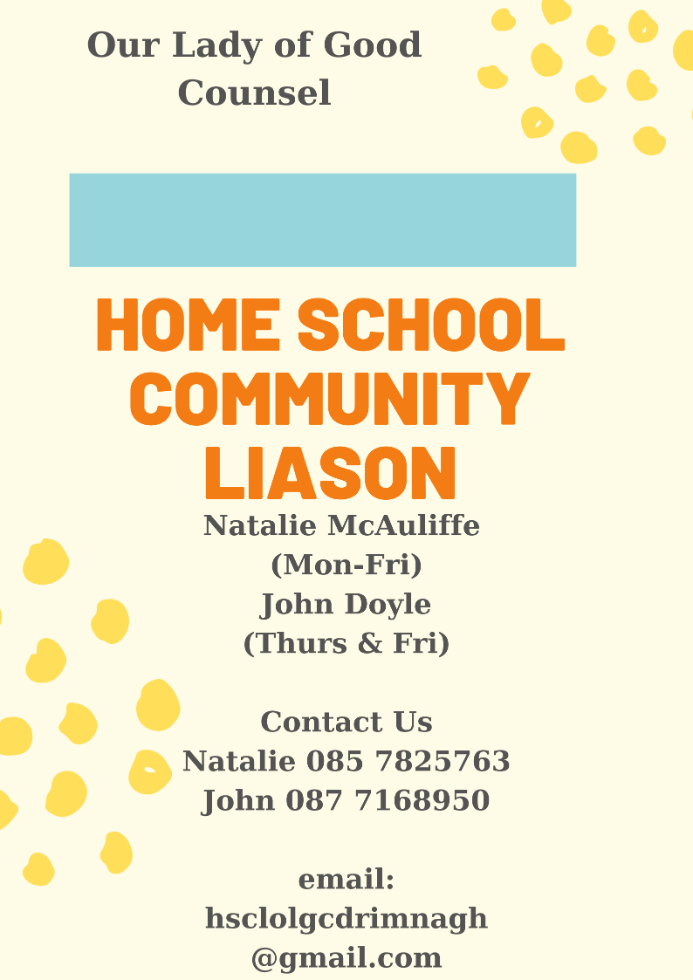 The HSCL co-cordinators meet parents throughout the year both in school and when out doing home visits. We aim to support parents in any way that is needed as you are the primary educators of your children.